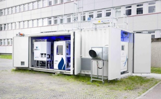 The synthetic fuels produced are both carbon-neutral and function as a storage for surplus renewable energy. The first litres of fuel were produced