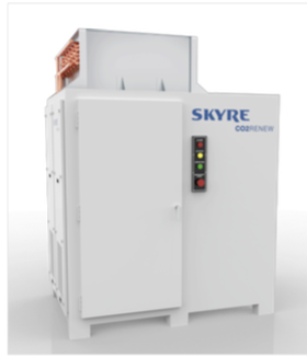 The CO2RENEW uses a proprietary electrochemical process to convert carbon dioxide to useable and valuable products. Source: Skyre The system, which