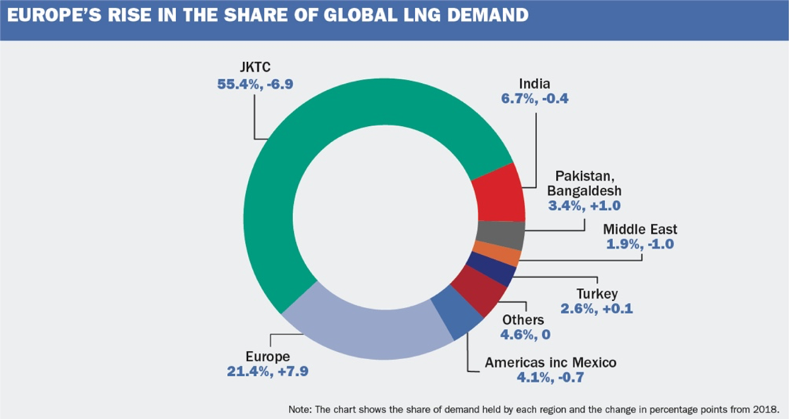 East Asia as a whole accounted for 55% of global LNG demand, compared with 62% in 2018.