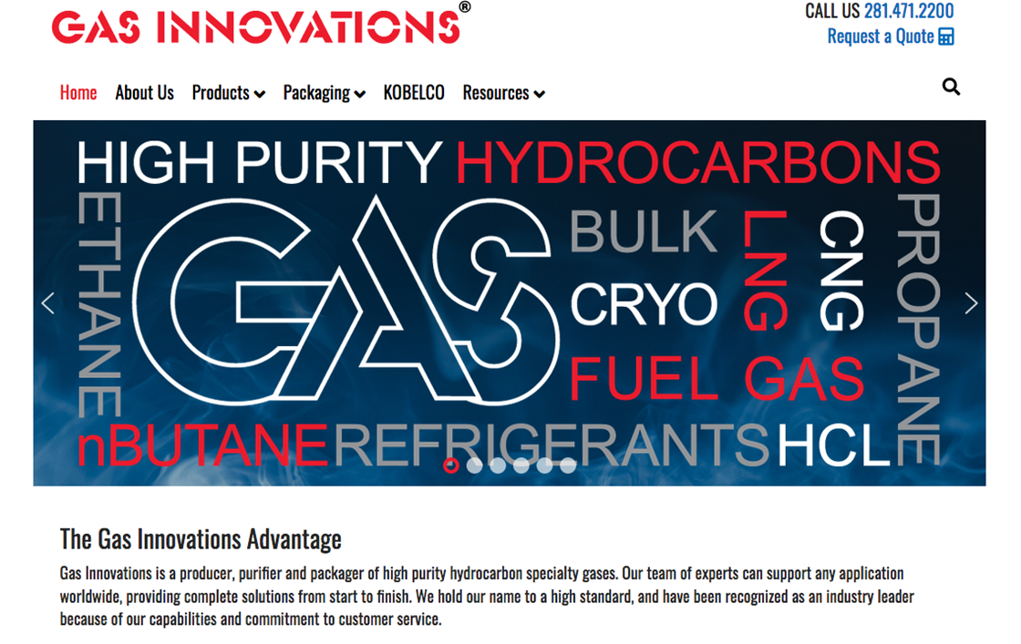 Don Bobyk Vice-President of Marketing at Gas Innovations, commented, “We are very excited to introduce our new website which features our hydrocarbon and specialty gas products on individual pages complete with all you need to know details. Additionally, you can download our complete new catalogue as well.”